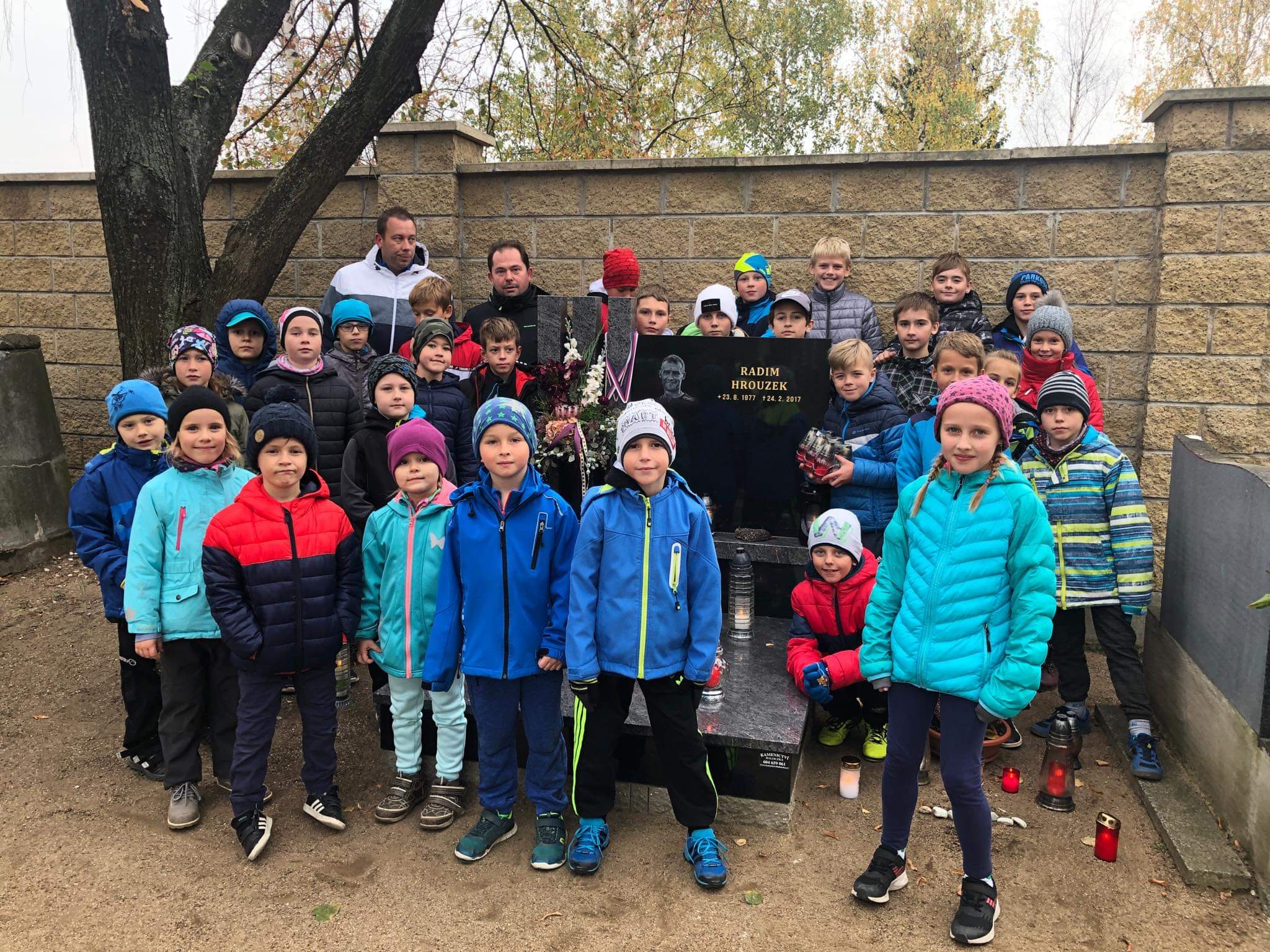 Po rozlučce po podzimí části soutěže se hráčky, hráči, trenéři přípravky a žáků sešli u hrobu Radima Hrouzka